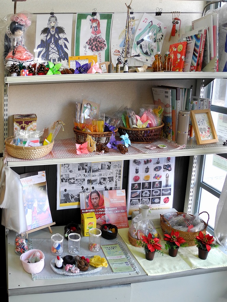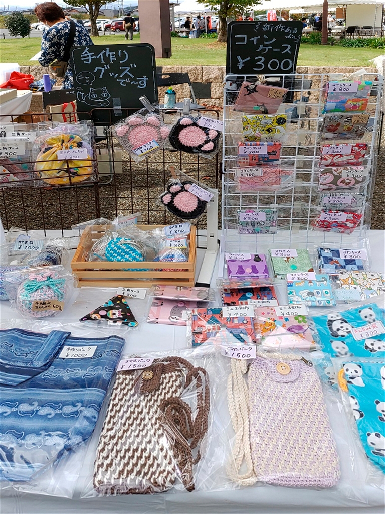 利用者さんのハンドメイド商品や寄付していただいた洋服や小物などなど、